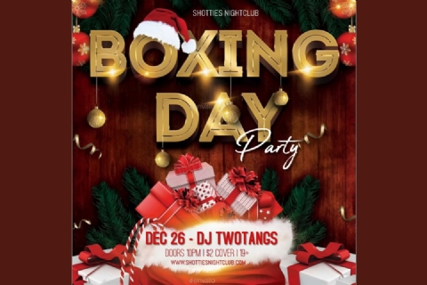 Christmas may be over, but the party is definitely not! Shotties Nightclub is keeping the holiday chaos alive with the UNBOXED Boxing Day Party, the perfect night to burn off the turkey, unwrap your wild side, and celebrate the season with your crew. Expect festive lights, holiday energy, and a packed dance floor from the moment the doors open. Featuring DJ TWOTANGS, your hometown SHOTTIES favourite, spinning high-energy club anthems, remixes, and post-Christmas bangers all night long. Holiday vibes take over the club with Christmas-chaos-meets-nightlife madness, Santa might show up, but the vibes definitely will. Cover is just $2, doors open at 10:00 PM, and this 19+ event requires valid ID.