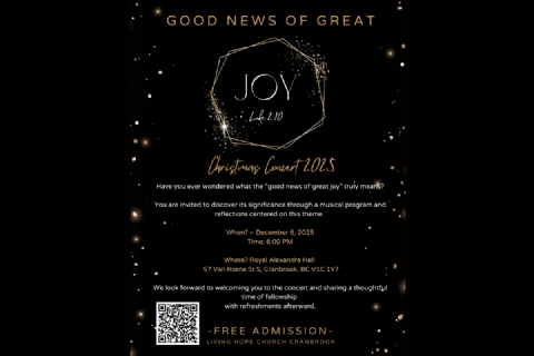 You are invited to an evening of music and reflection at the Christmas Concert – Good News of Great Joy, taking place on December 6, 2025 at 6:00 PM in the historic Royal Alexandra Hall at the Cranbrook History Centre. Presented by Living Hope Church Cranbrook, this heartfelt program explores the meaning and significance of the Christmas message through musical performances and thoughtful reflections. Following the concert, guests are welcome to enjoy refreshments and a time of fellowship. Admission is free, and all donations received will go directly toward helping local people in need.