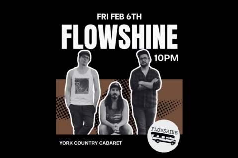 Get ready for a high-energy night of psychedelic rock, funk grooves, and deep jams as Flowshine brings their signature sound to the York Country Cabaret. Known for hypnotic live performances, extended jams, and raw musical chemistry, Flowshine delivers a show built for live-music lovers and anyone looking for a stand-up, move-your-feet kind of night. Expect heavy rhythms, soaring guitar lines, cold drinks, loud amps, and a packed dance floor from the first note to the last. This is a free show and it’s one night only, so don’t miss it.