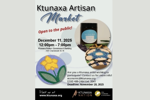 Shop local and support Ktunaxa artists at the Ktunaxa Artisan Market on Thursday, December 11 from 12:00 PM to 7:00 PM at 220 Cranbrook Street North. This vibrant holiday market features beadwork, jewelry, apparel, crafts, artwork, photography, skincare, and more—showcasing the talent and creativity of Ktunaxa artisans. Vendor tables are reserved for Ktunaxa creators, but the market is open for the entire community to enjoy. Those interested in becoming a vendor can email economic@ktunaxa.org for details.