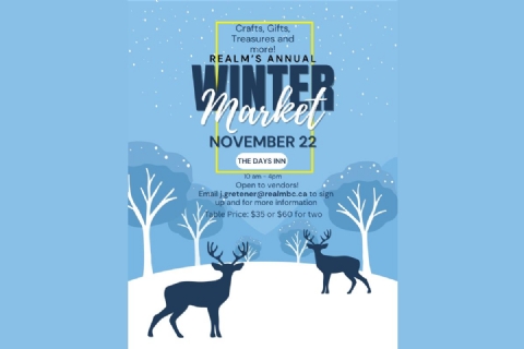 Support local makers at Realm’s Annual Winter Market, taking place Saturday, November 22 from 10:00 AM to 4:00 PM at the Days Inn Ballroom. This seasonal market features a wide variety of vendors offering gemstones, handcrafted jewelry, collectible cards, home décor, local art, Christmas gifts, treats, and snacky eats. With something for all ages, the market is a fun and festive way to kick off holiday shopping while supporting local creators. Admission is free. Vendors interested in participating can email j.gretener@realmmbc.ca for details.
