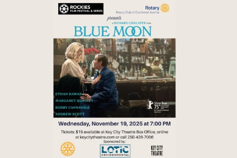 Presented by Cranbrook Rotary Sunrise and Lotic Environmental, the Rockies Film Festival & Series continues on Wednesday, November 19 with a screening of Richard Linklater’s Blue Moon. This compelling drama follows legendary lyricist Lorenz Hart as he confronts the unraveling of his professional and personal life during the opening night celebration of his former partner’s hit musical Oklahoma!. Through one pivotal evening, Hart grapples with a world that no longer values his talent and the painful complexities of love and identity. Tickets are $15, and the event is sponsored by Lotic Environmental.