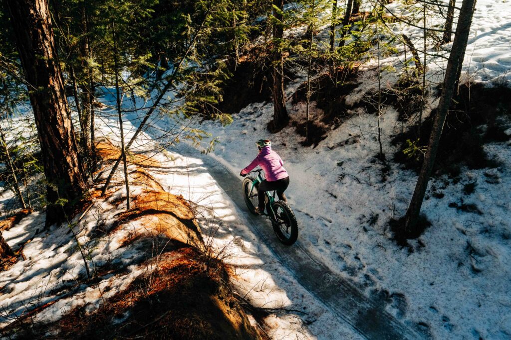 “Our climate here is really conducive to fat biking,” said Jahn-Smith, as we caught our breath after our ride. “We get snow, but not a ton. Temperatures are moderate. Sunshine is plentiful. And the peaceful pine forests here are ideal for fast and flowy trails. We also have a passionate community of riders and volunteers that make it all happen.”
