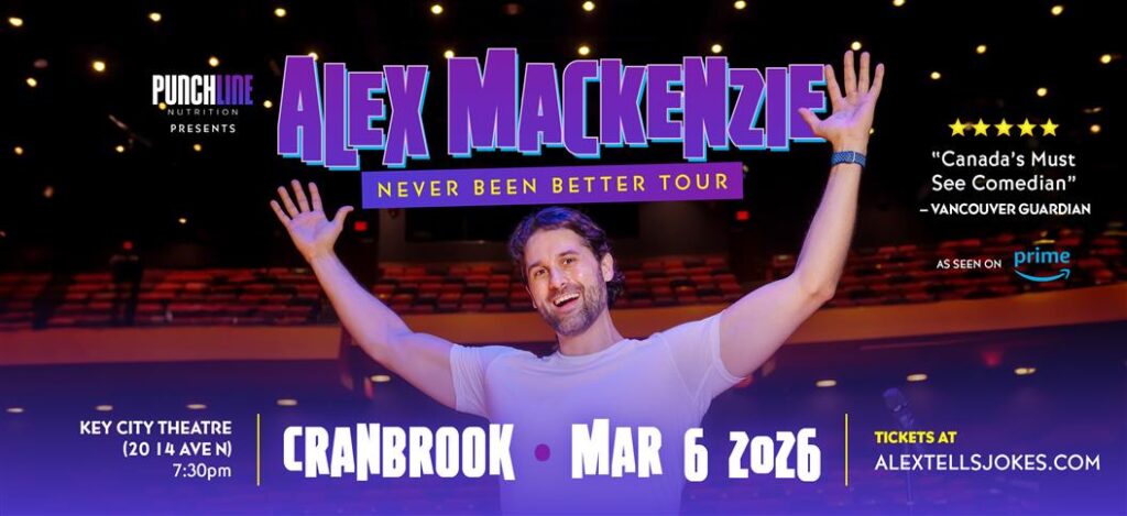 Presented by ECL Productions, internationally acclaimed comedian Alex Mackenzie brings his Never Been Better Tour to Key City Theatre on Friday, March 6, 2026. Known as Canada’s “happiness cheerleader,” Mackenzie delivers a joy-filled evening of sharp storytelling, spontaneous crowd interaction, and inspiring reflections on resilience and pursuing your dreams.