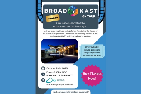 Join us for an inspiring evening at BROADKAST on Tour, a film festival celebrating the creativity, resilience, and innovation of Kootenay entrepreneurs.