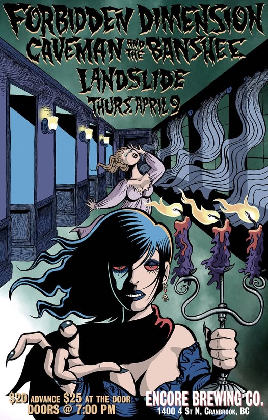 Headlining the night is Calgary’s legendary horror punk band Forbidden Dimension, making their first official Cranbrook appearance. Known for their wild energy and cult following, they bring a unique mix of punk, horror, and theatrical performance.
