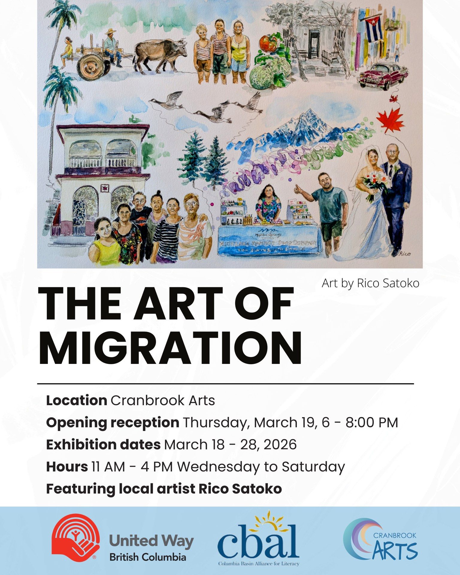 Cranbrook Arts presents The Art of Migration, an exhibition featuring the work of local artist Rico Satoko. Hosted in partnership with the Columbia Basin Alliance for Literacy, the exhibition explores themes of migration, culture, and community through expressive visual storytelling. The exhibition runs March 18 to March 28, 2026, with gallery hours from 11:00 AM […]