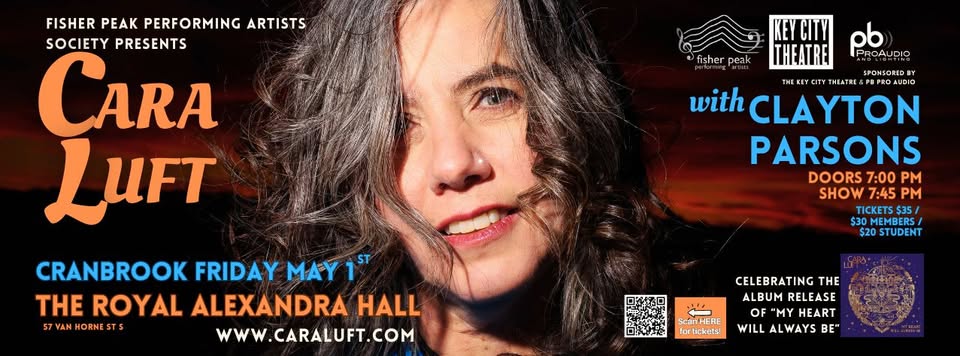 Join acclaimed Canadian artist Cara Luft live in Cranbrook on May 1 at the historic Royal Alexandra Hall for a special album release performance. Celebrate the launch of her new album My Heart Will Always Be, featuring collaborator Clayton Parsons, in an evening of powerful songwriting and live music. Presented by the Fisher Peak Performing […]