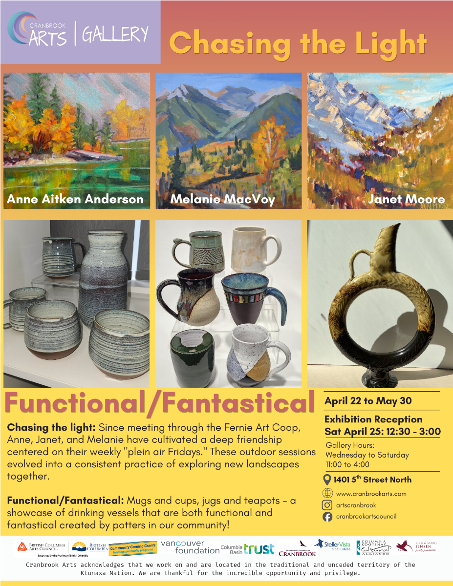 Explore two featured exhibitions at the Cranbrook Arts Gallery: Chasing the Light and Functional/Fantastical. Chasing the Light highlights plein air landscape paintings by Anne Aitken Anderson, Melanie MacVoy, and Janet Moore, capturing the beauty of outdoor scenes across the region. Functional/Fantastical showcases a creative collection of pottery, including mugs, jugs, and teapots that are both […]