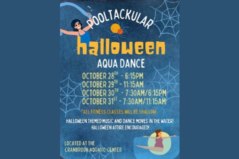 Something wickedly fun is brewing at the Cranbrook Aquatic Centre — it’s time for the Pooltackular Halloween Aqua Dance! Get ready for a frightfully fun workout in the water with Halloween-themed music, creepy-cool dance moves, and a splash of spooky spirit.