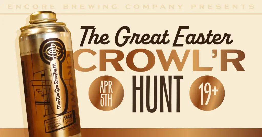 Find a crowler, snap a photo, and share it on social media using #encorebeer. Bring your find back to Encore Brewing before April 27 to have it filled for free.