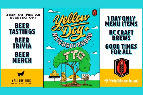 Join Yellow Dog Brewing and Neighbourhood Brewing for an exclusive tap takeover and pairing menu at Fire Hall Kitchen & Tap. Enjoy six of their best pours — from crisp lagers to creative one-offs — each thoughtfully paired with a chef-designed dish.
