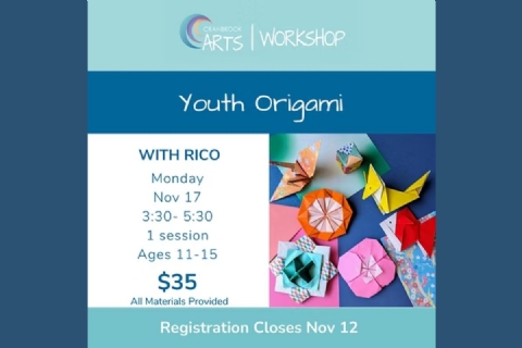 Take your creativity to the next level with Youth Origami, a hands-on workshop led by artist Rico. Taking place on Monday, November 17, from 3:30 to 5:30 PM at the Cranbrook Arts Gallery, this one-session class invites youth ages 11–15 to explore the art of folding paper into imaginative shapes inspired by animals and nature. With step-by-step guidance and lots of room for personal expression, participants will develop focus, patience, and artistic confidence while crafting their own paper masterpieces. No experience is needed, and all materials are provided. Tickets are $35 per participant.