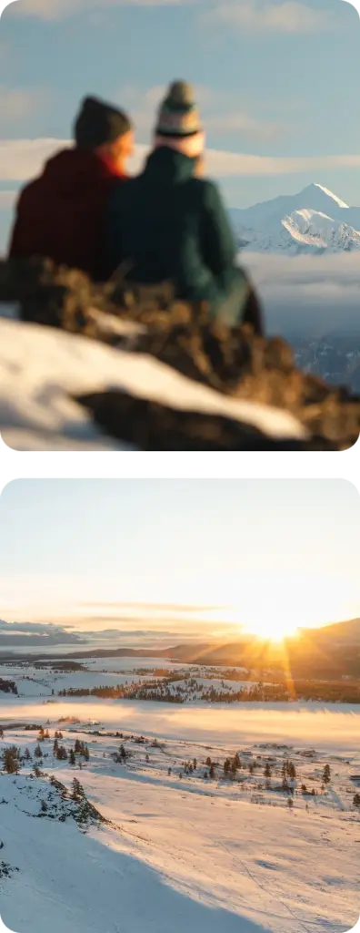 Fresh snow, quiet trails, and coffee that warms fast. Snow outside, comfort inside, and mountains always close.